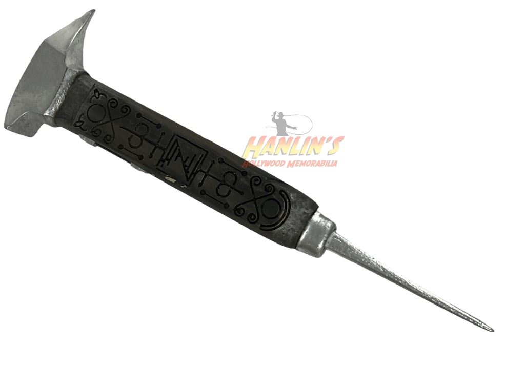 Original ornately designed screen used stationary pick used in the fantasy police procedural drama television series 'Grimm' (2011-2017), which follows Portland homicide detective Nicholas Burkhardt (played by David Giuntoli), who discovers he is a Grimm, the latest in a line of guardians who is sworn to keep the balance between humanity and mythological creatures, known as Wesen.
