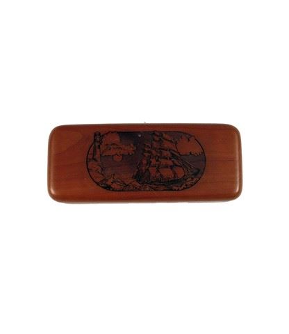 Direct from the production of the fantasy based TV series Grimm (2011– ) is this production used wood box detailed with an engraved ship on the top. (approx. 7" x 3")