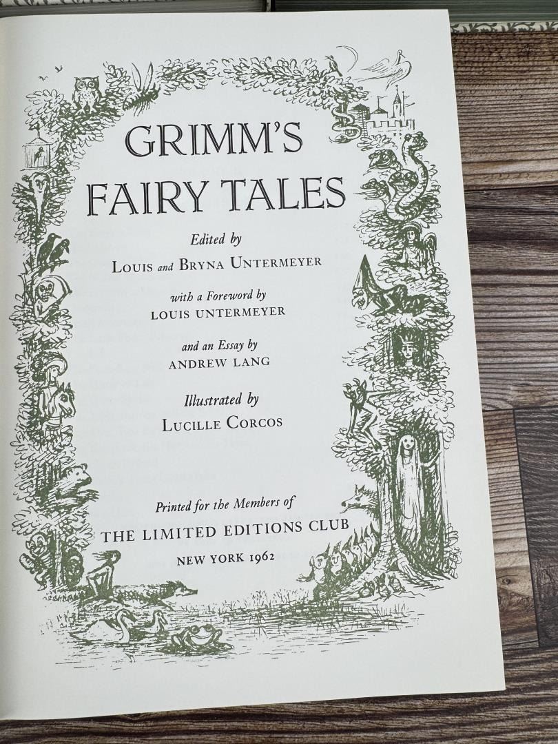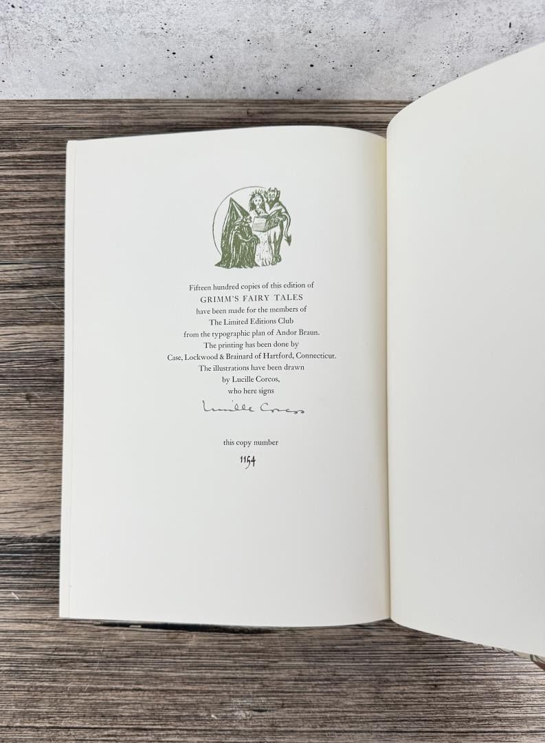 Jakob & Wilhelm Grimm, 1962. Limited Editions Club 1154 of 1500. Illustrator signed. Provenance- from the estate of former Ford Motor Company CEO Donald E. Petersen.
