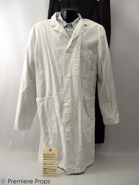 Dr. William Block's (Josh Brolin) white "Meta" lab coat (size 42), charcoal gray "Braggi" pants (size 36/30), white w/ blue stripes "Joseph Abboud" shirt (size 17.5 - 32/33) (includes costume wardrobe tag / screenworn) (Planet Terror)
