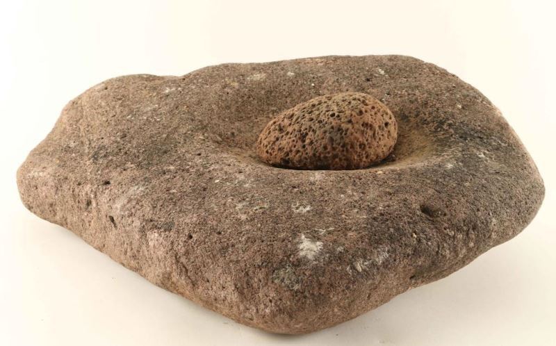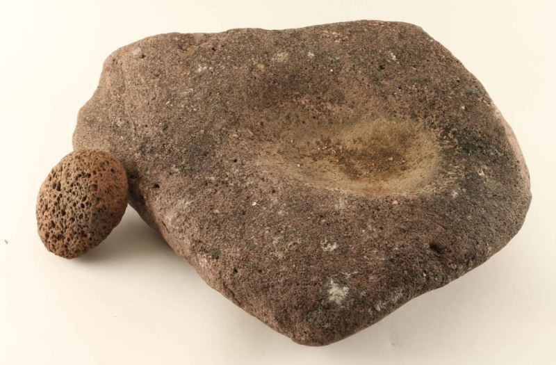 Red stone that measures 20"l x 15"w x 6"h with a round porous stone. Approx 80+ Lbs