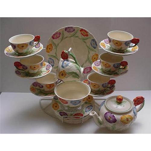 </font></strong>Beauitful Grindley Flower Teaset which includes the teapot in very good condition with no cracks or chips. It includes 6 trios a sandwich plate cream and sugar and teapot. The flower handles are just delightful and it is a charming set</font>