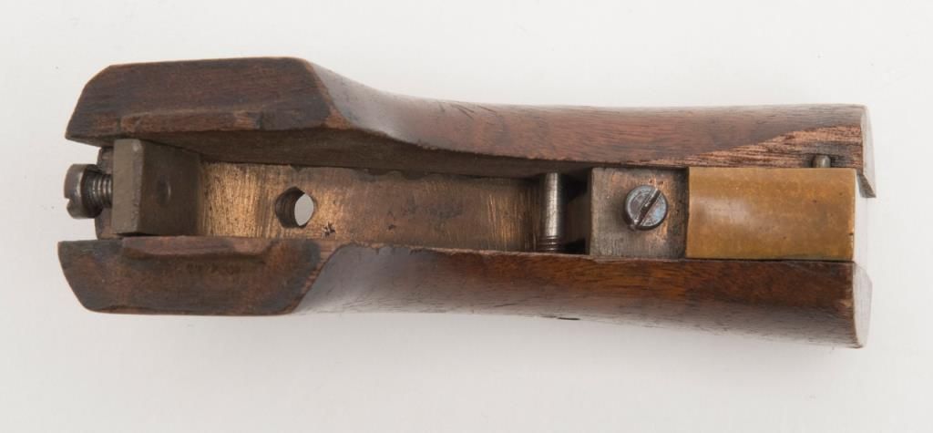 Grips and back strap in brass for experimental Remington single shot pistol or flare gun. Est.: $200-$400