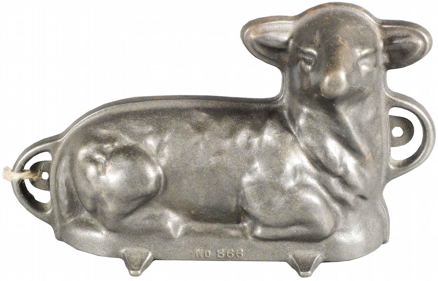 Griswold Early American Quality Cast Iron, Lamb Cake Mold #866. Comes with original instruction card. Excellent condition. 12 X 8 X 4 1/2 inches.