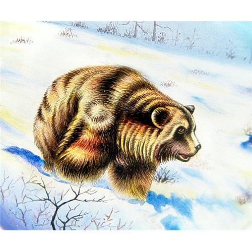 Please note I only ship to Canada and USA and if paypals is used the address MUST BE CONFIRMED.<p>Grizzly Bear Inside Painted Snuff Bottle by professional inside painting artist Jia Ying. Absolutely a masterpiece worthy of consideration. Not only has Ying captured the awesome powerful character of the agressive bear but has taken incredible effort to set the landscape to perfection. The bottle is signed and dated by the artist and named 'tracing in the snow'. The bottle has measurements of 82x68x30mm and for those not familiar with metric 25mm=1".