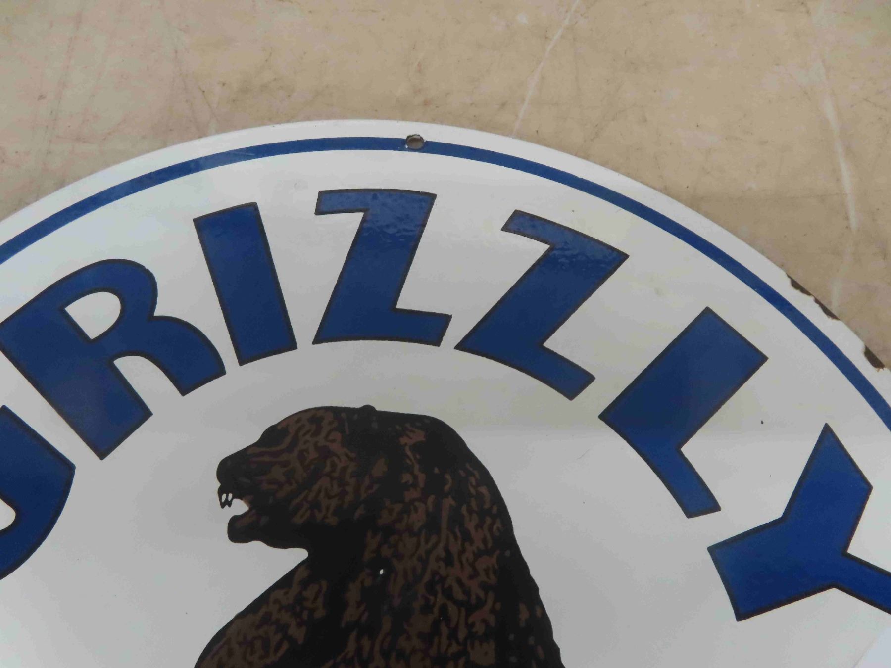 Grizzly Gas Round Sign - Porcelain 12" Wide