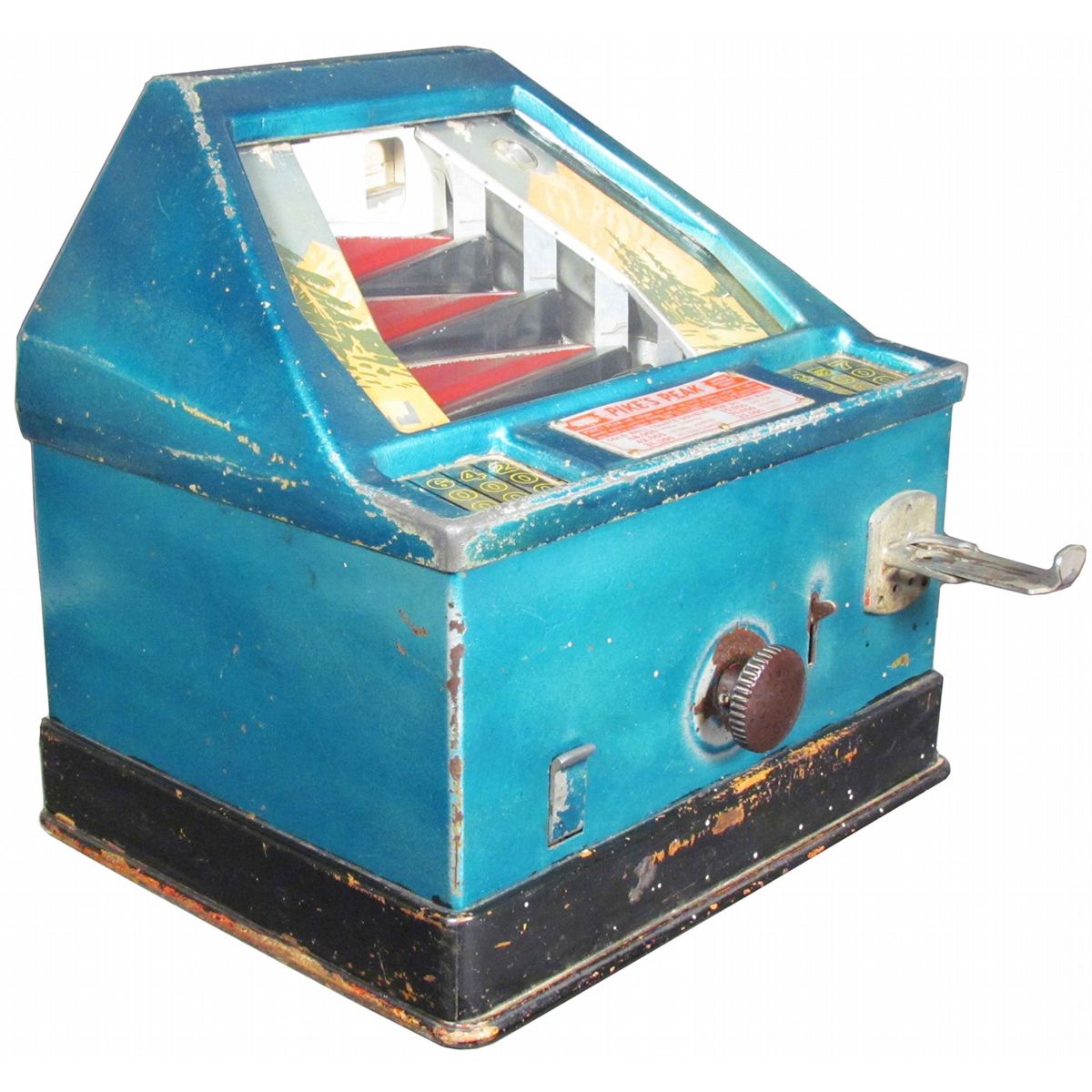 Groetchen "Pikes Peak" Trade Stimulator. Some minor paint loss, otherwise good working condition. Comes with key. 13 X 13 X 10 1/2 inches.