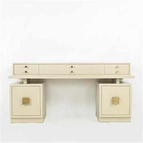 Grosfeld House sideboard USA, c. 1955 lacquered wood, brass 72 w x 22 d x 34.5 h inches Three drawers above two cabinets containing one adjustable shelf each. Signed with manufacturer's label to interior drawer: [Grosfeld House New York, Chicago, Los Angeles].