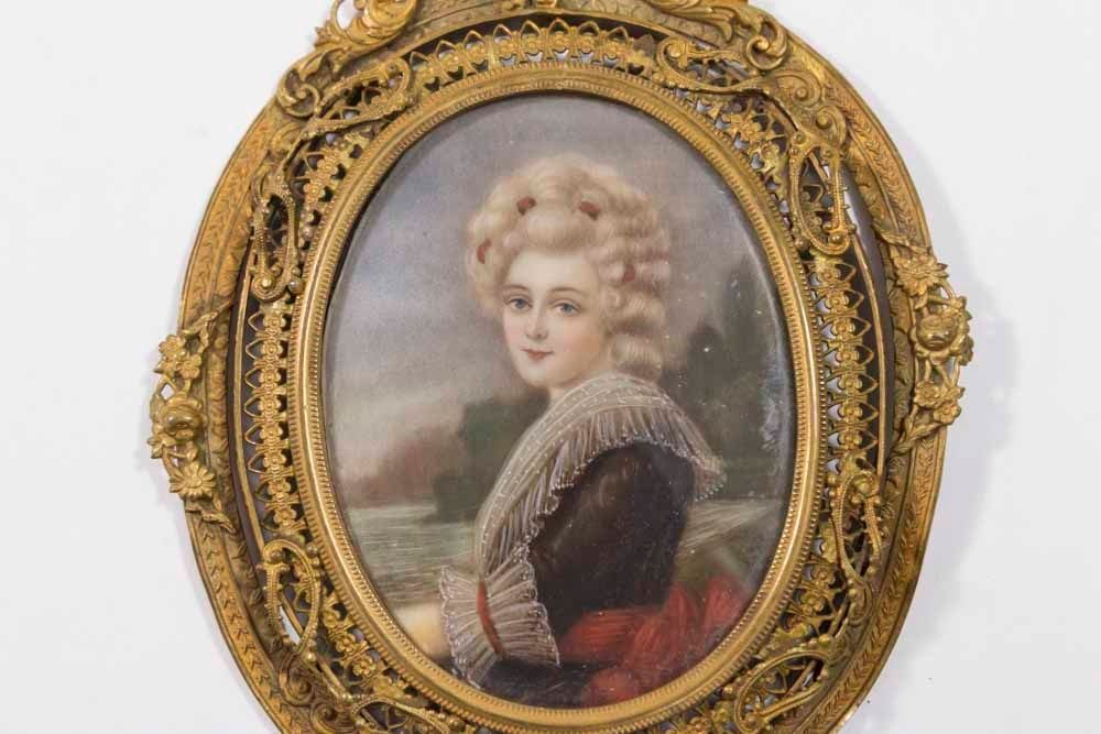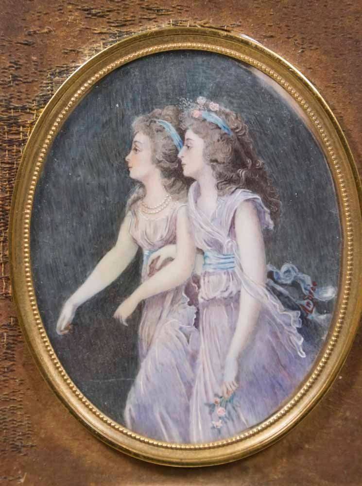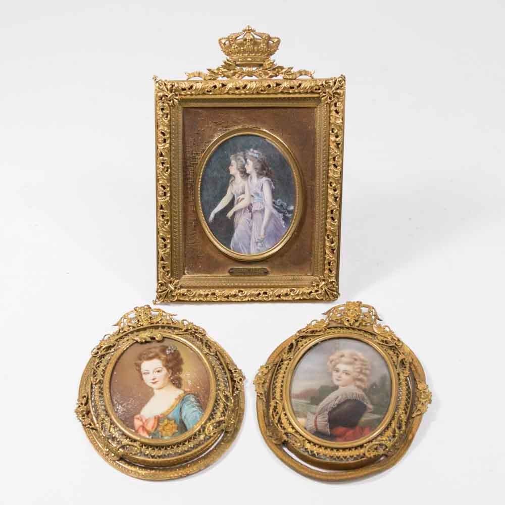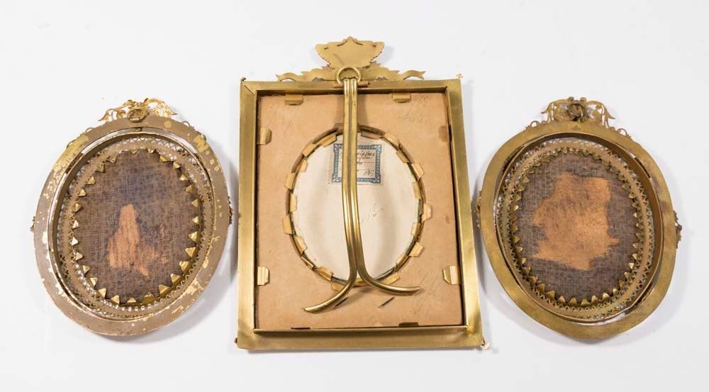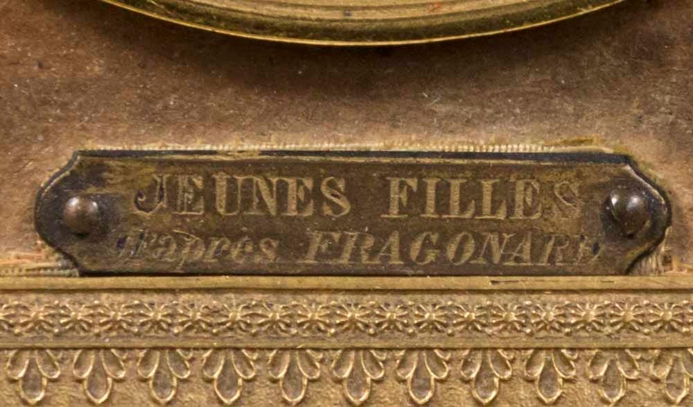 1 signed Linke, 1 after Fragonard. Largest approx. 7 3/4" H. From an Edgewater, NJ estate. 1 missing glass and paint losses.