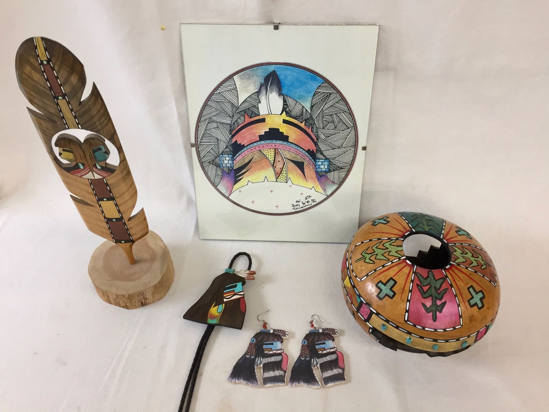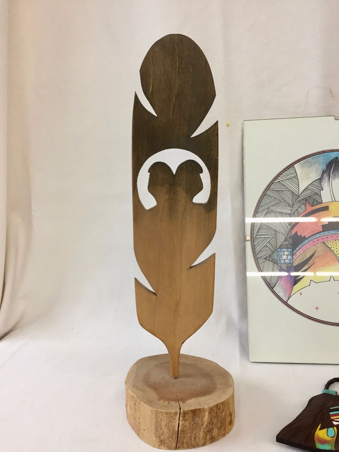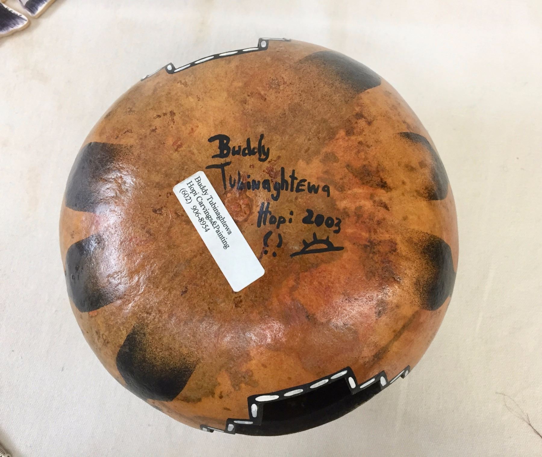 Description: Group of various Hopi, handmade items, all made by Bubba Tubinaghtewa. Maker: Bubba Tubinaghtewa. Approx. Age: Fairly contemporary. Size: Sizes range from 11” l x 8 1/2” w to 13” tall x 4” w. Condition: Good for its age, normal wear expected. Please look closely at the pictures - they are an important part of our description. Shipping: There will be a $10 handling / packaging fee for shipping this lot. The actual cost of postage will be added on top of that.