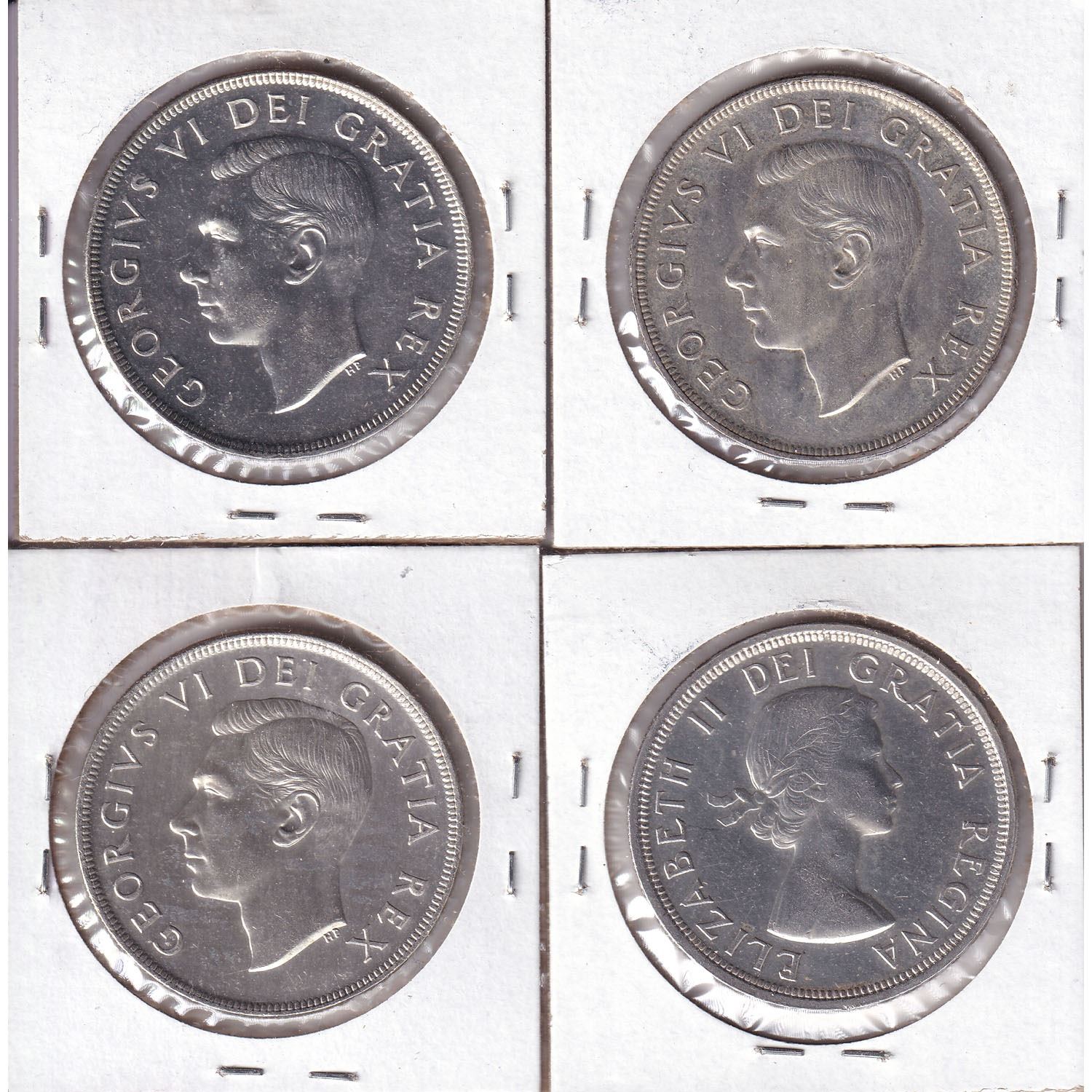 Group Lot 4x Silver $1: 1950, 1951, 1952, 1953 SF All coins EF or better, some coins lightly cleaned