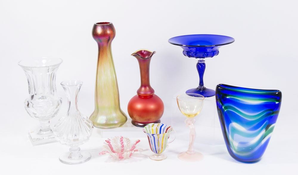 Including signed and unsigned Baccarat, Murano, and art glass. Tallest approx. 9" H.