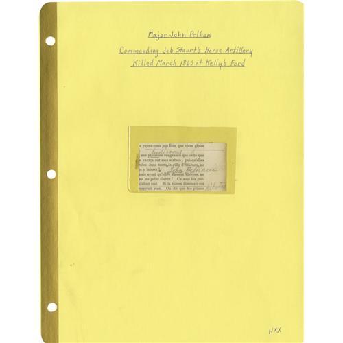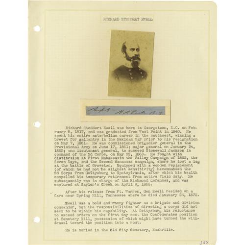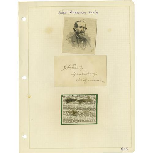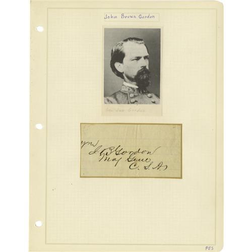 <B>Group Lot of Five Confederate Officers' Autographs from the Desirable Army of Northern Virginia</B></I> consisting of: <BR><B>Major John Pelham</B></I> (commander of JEB Stuart's horse artillery, killed March 1863 at Kelly's Ford)- Pencil signature on a section of printed book page. <BR><B>John Brown Gordon</B></I>- Bold, large clipped signature with rank below. A scarce signature. <BR><B>Jubal A. Early</B></I>- Autograph card with "<I>Lynchburg, Virginia</B></I>" below. Also scarce. <BR><B>Richard S. Ewell</B></I>- Clipped signature. Scarce. <BR><B>William mahone</B></I>- A signature on a White House card.<BR><BR><b>Shipping:</b> Small Flat (<a target="_blank" href="http://www.heritageauctions.com/common/shipping.php">view shipping information</a>)