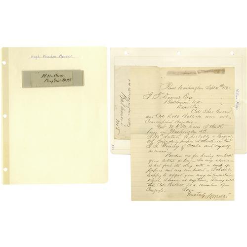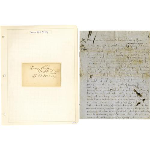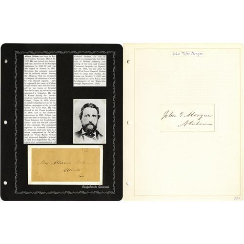 <B>Group Lot of Ten Confederate Generals' Autographs</B></I> consisting of: <BR><B>Samuel Bell Maxey</B></I>- Autograph card. <BR><B>Hugh W. Mercer</B></I>- Clipped signature with rank. <BR><B>William Miller</B></I>- 1891 ALS discussing possible locations of surviving CSA generals. <BR><B>Young M. Moody</B></I>- Signature on an 1883 Alabama court document. <BR><B>John C. Moore</B></I>- Autograph card with rank. <BR><B>Patrick T. Moore</B></I>- Autograph card with rank, dated September 20, 1864. Nice. <BR><B>John T. Morgan</B></I>- Autograph card with "<I>Alabama</B></I>" below. <BR><B>Allison Nelson</B></I>- Signature incorporated into an address panel to "<I>Mrs. Allison Nelson</B></I>." Nelson fell ill of fever and died in service in 1862. Scarce. <BR><B>Francis R.T. Nicholls</B></I>- Autograph card. <BR><B>Lucius B. Northrop</B></I>- Two-page ALS in his hand and signed with "<I>CSA...A memorandum in relation to the Purchase of Flour.</B></I>" Detailed glimpse into the process of the Confederate Army, referencing markets in Richmond, Manassas, etc.<BR><BR><b>Shipping:</b> Small Flat (<a target="_blank" href="http://www.heritageauctions.com/common/shipping.php">view shipping information</a>)