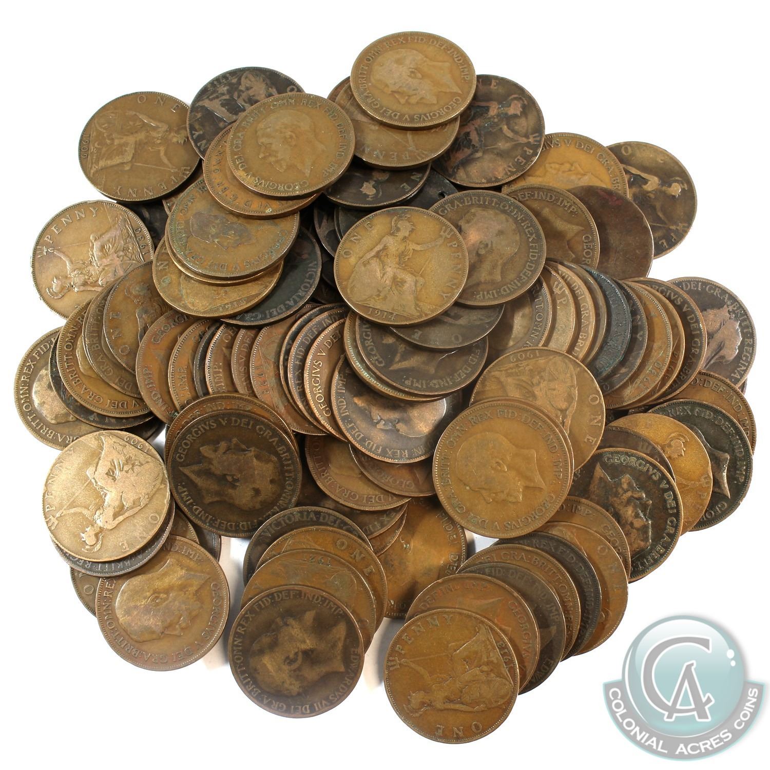 Group Lot of 100x Mixed Year Great Britain Pennies.