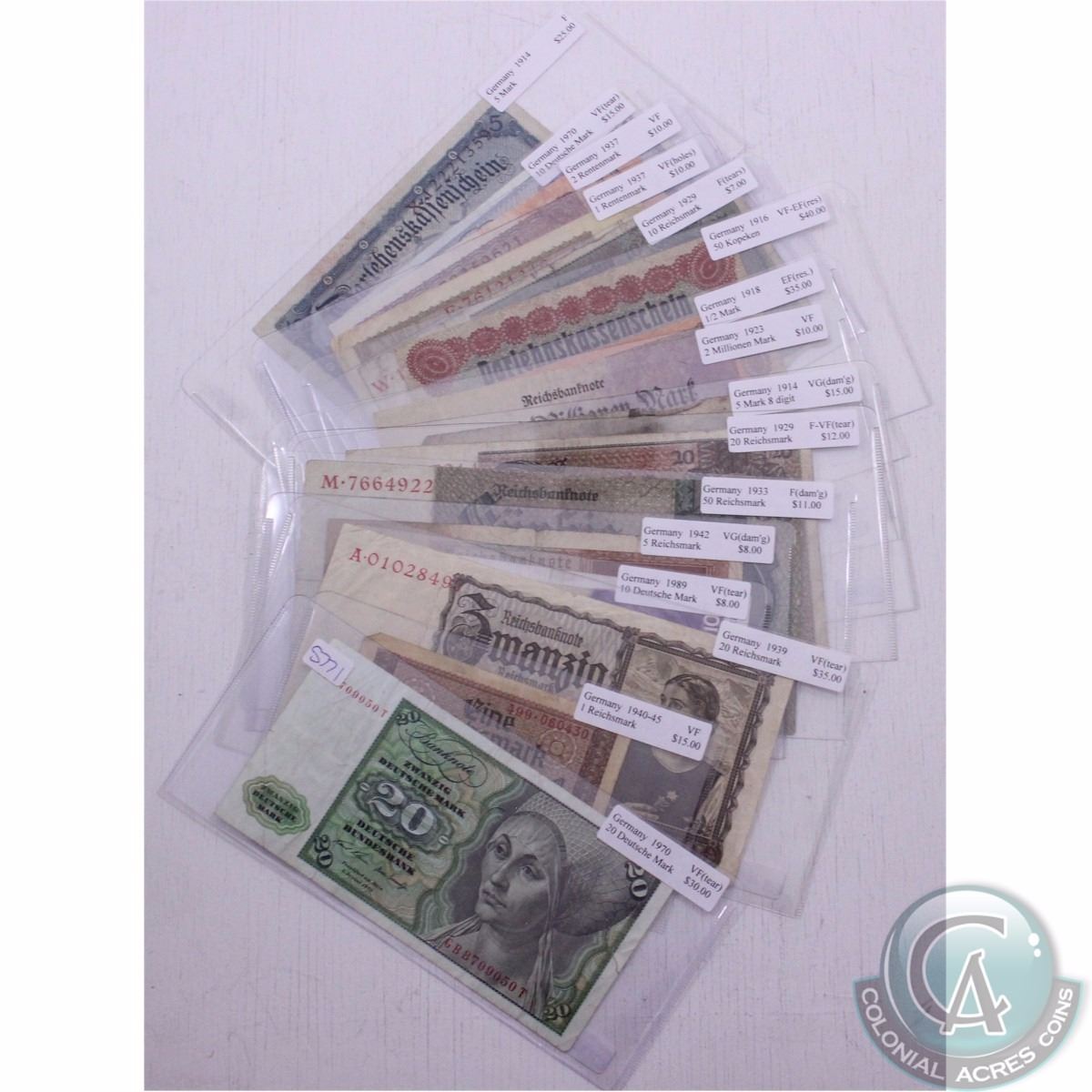 Group Lot of 16 x Small Sized German Paper Money. The notes date 1914 to 1989.
