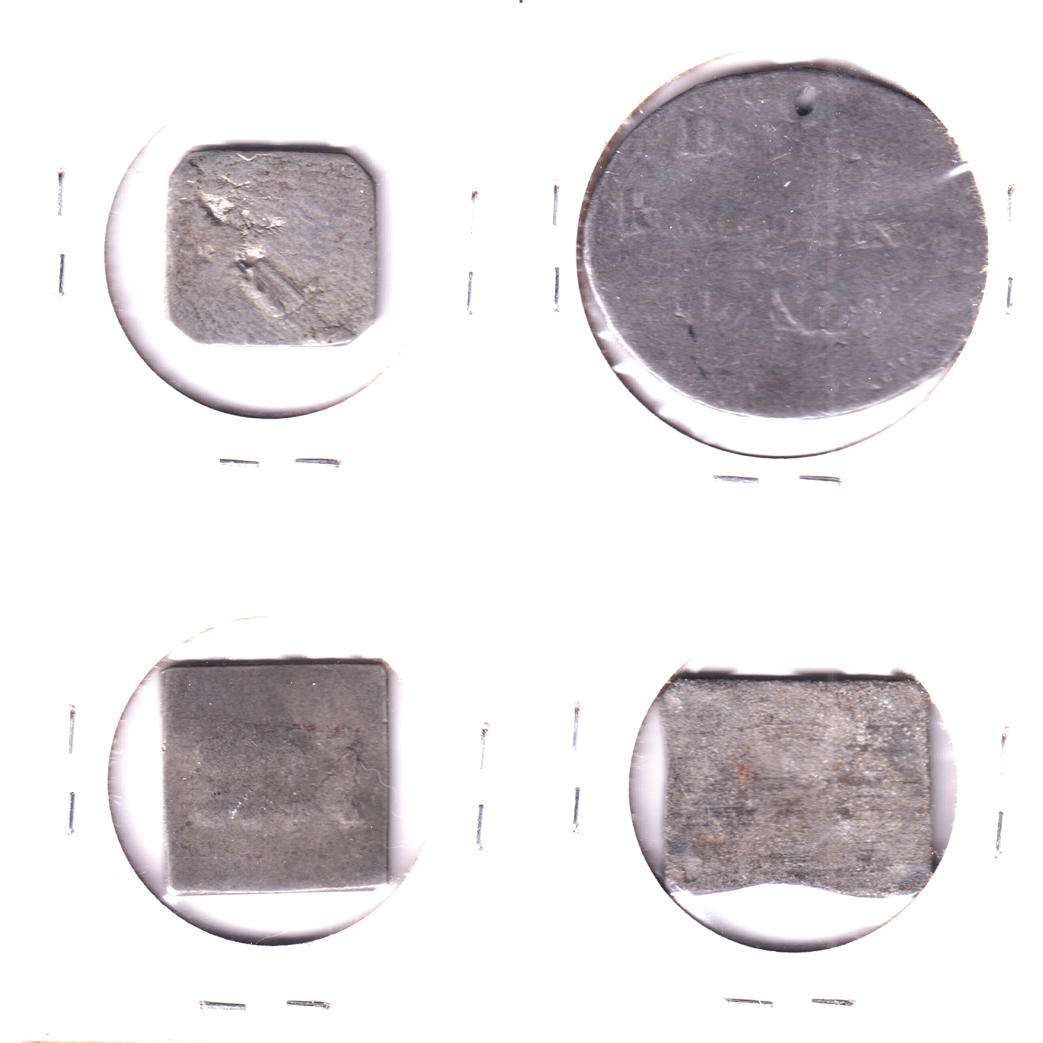 Most of the tokens are illegible, one is dated 1805. 4pcs.