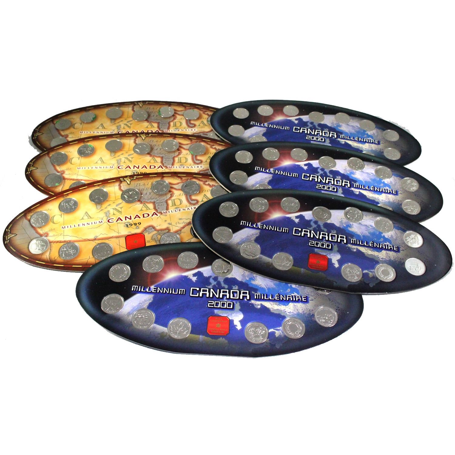 Group Lot of 1999 & 2000 Canada 25-Cent Millennium Set in Oval, 7Pcs (Corrosion)