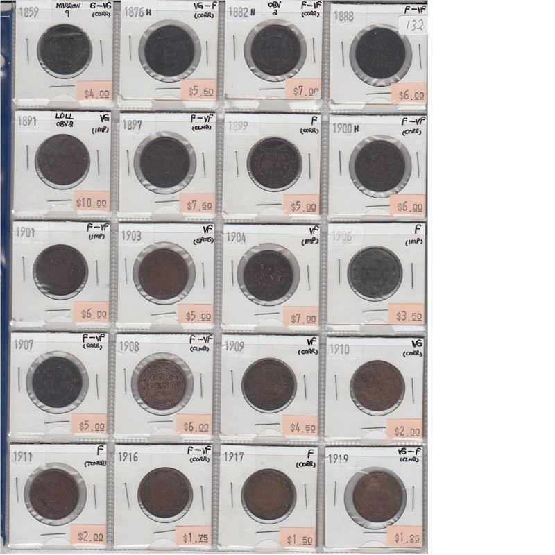 Group Lot of 20x Canada Large Cents, oldest date is 1859