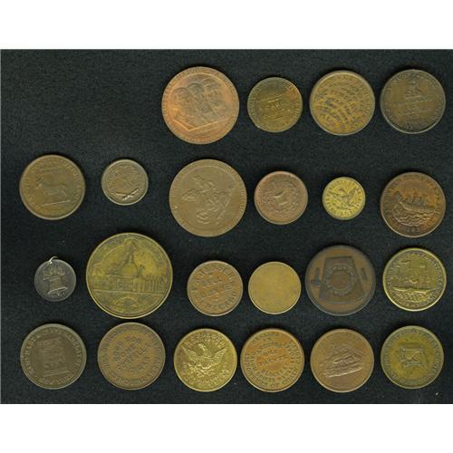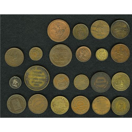 <B>Group Lot of 22 Hard Times and Miscellaneous Tokens and Medals, Uncertified.</B></I> A nice dealer lot of better tokens and medals, many attributed.