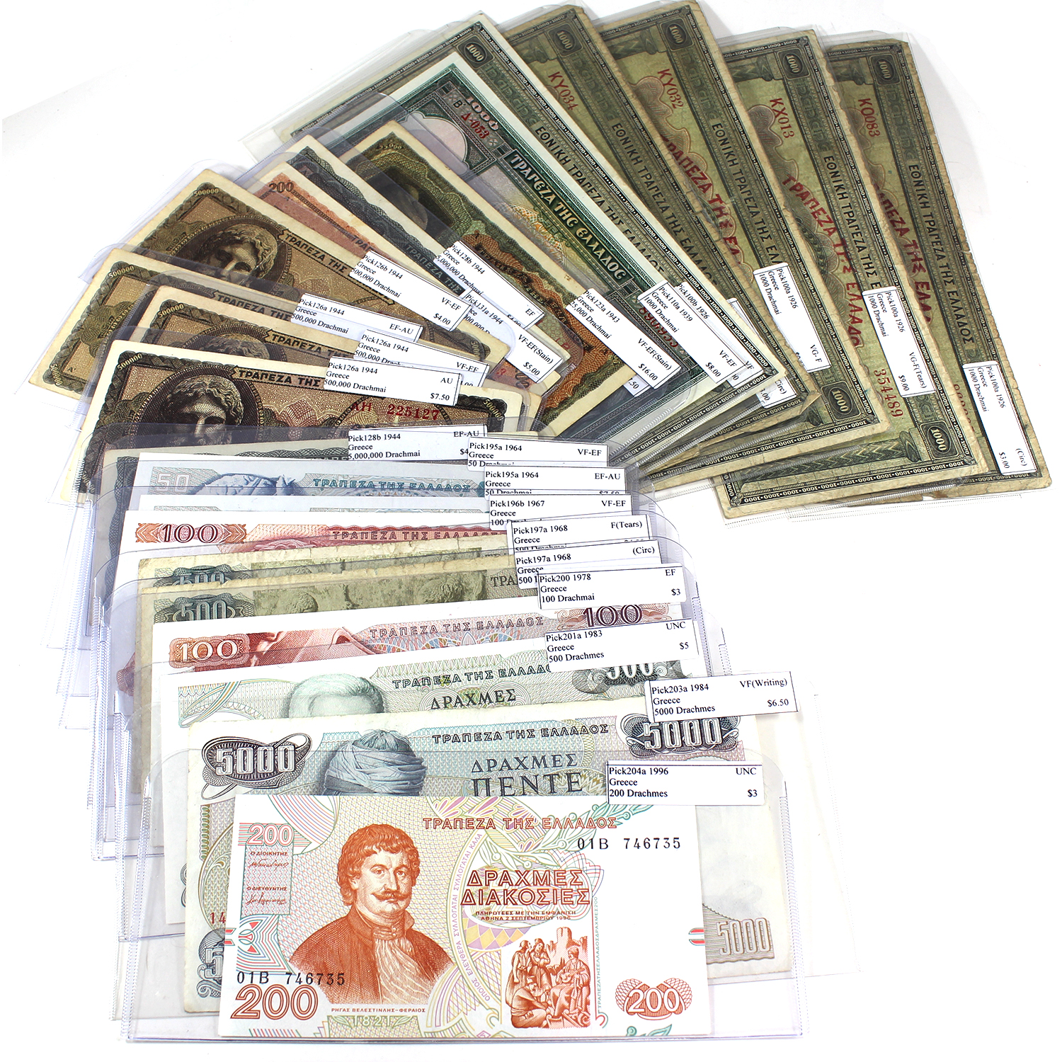 Group Lot of 24x Greece 1926-1996 Mixed Denomination Banknotes Circ. to UNC. 24pcs.