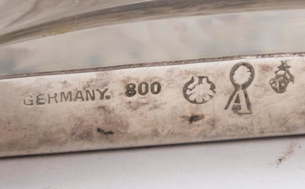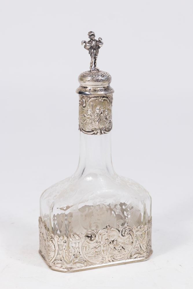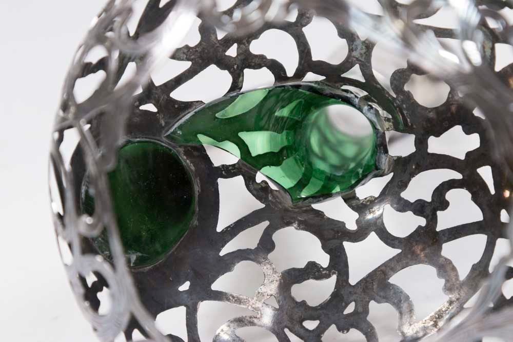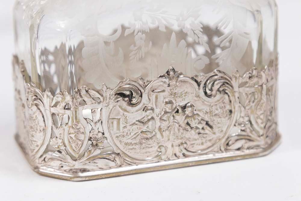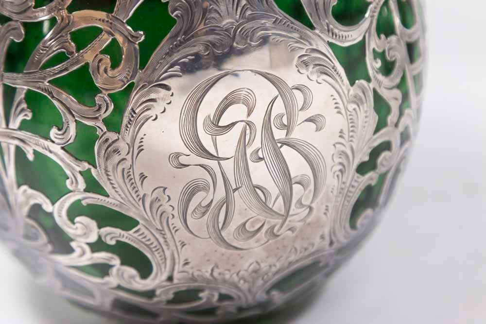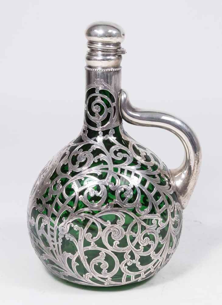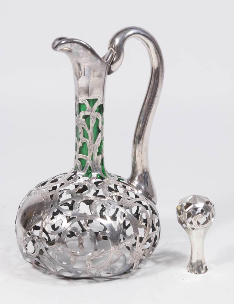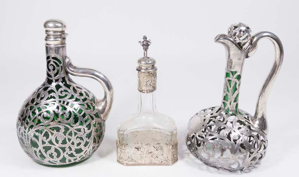 Including: Italian figural with etched glass ( 800 German silver ) - approx. 8" high, one green silver overlay pitcher with spout - glass cracked- approx. 9" high,