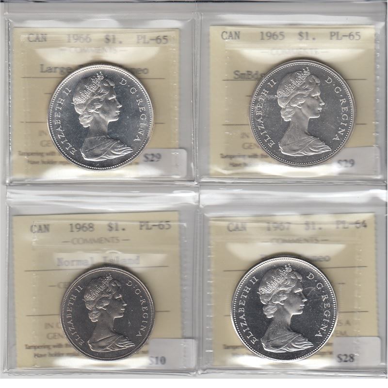 Group Lot of 4x Canada $1 ICCS Certified PL-65 and PL-64.