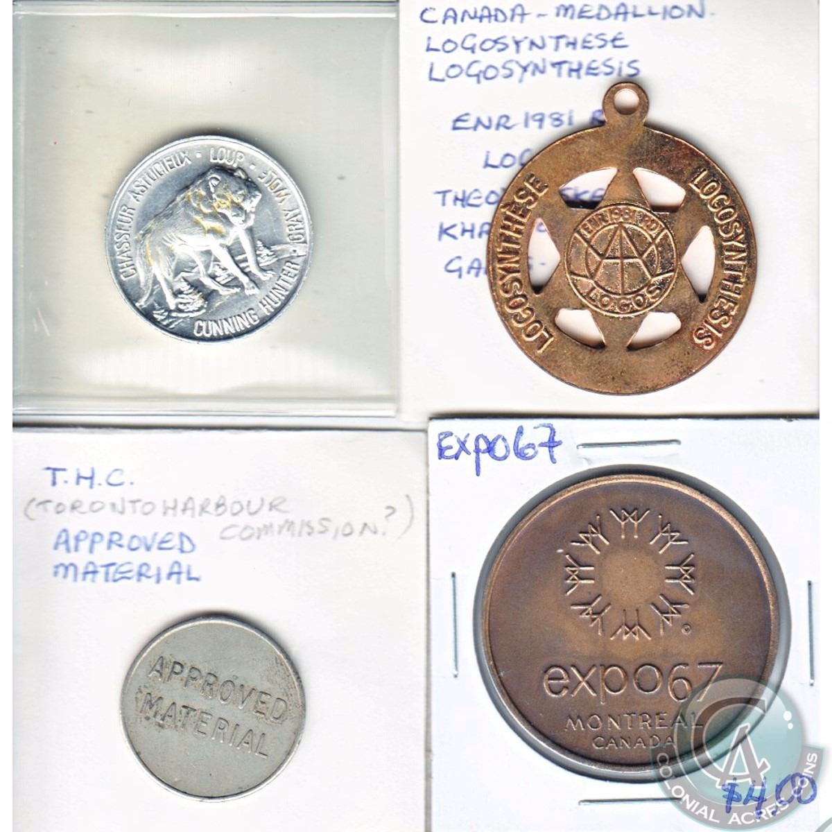 Group Lot of 4x Canadian Tokens; Canada's Northern Wildlife, Logosynthese, Expo67 Montreal, T.H.G.. 4pcs