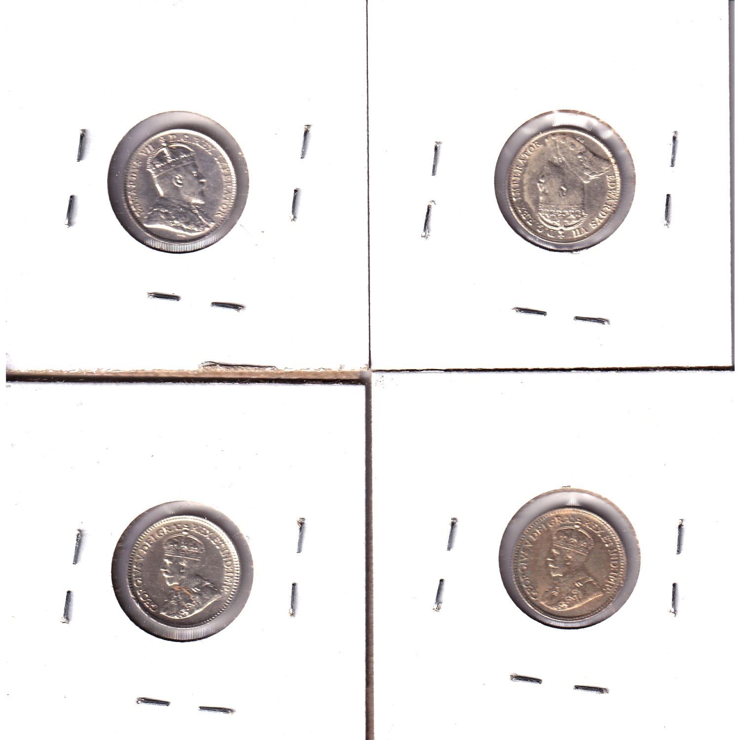 Group Lot of 4x Silver Canada 5-cents: 1906, 1910 Ptd Lvs, 1912, 1917. All coins EF-AU with some min
