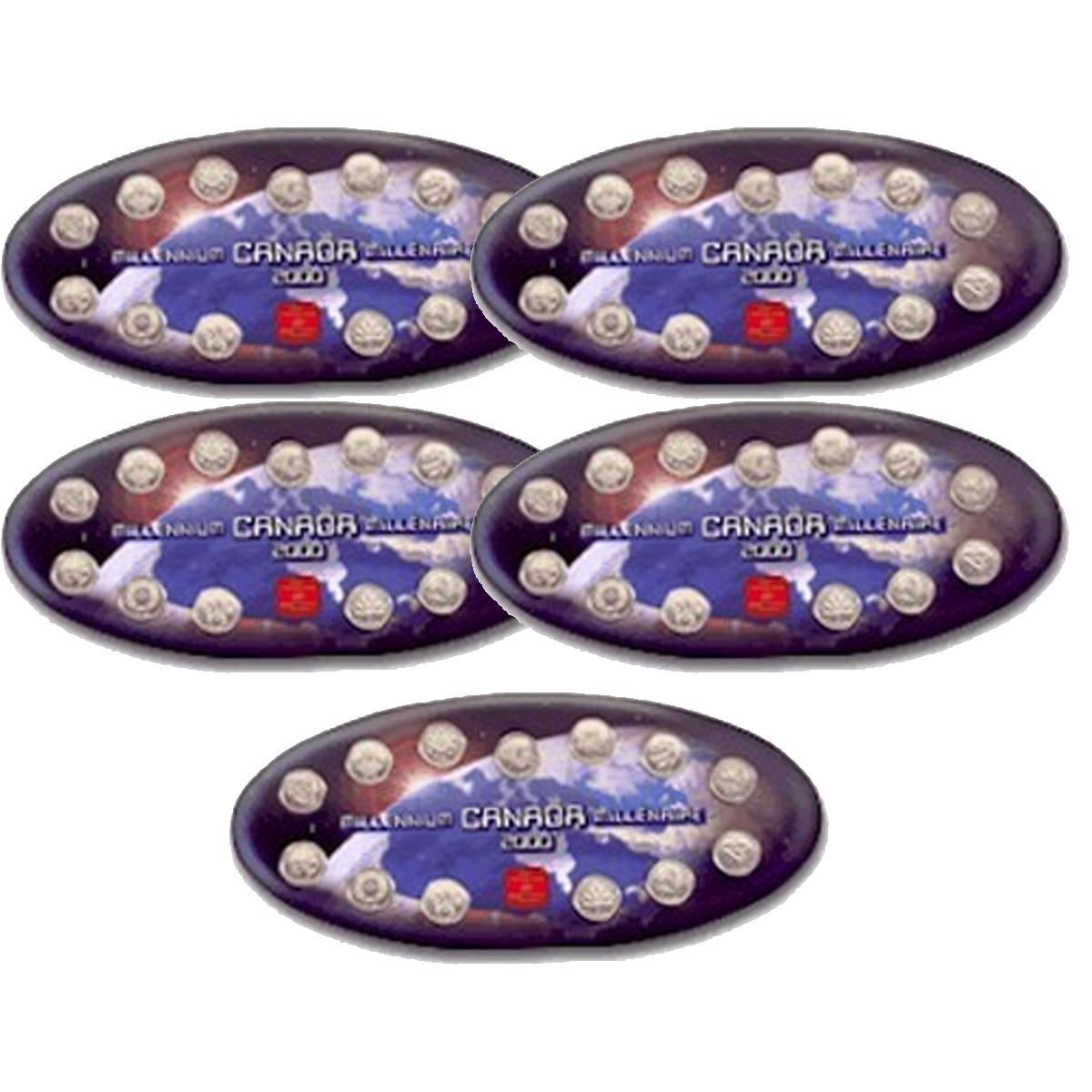 Group Lot of 5x Canada 2000 Millennium 12-coin 25-cent Commemorative Sets with Millennium Token from the RCM. Buyers Premium will be added on all items as per our terms of sale. We accept Paypal, Credit Card, E-Transfer Payments, Cheque or Money Orders (there is an additional 3% fee for using Paypal or Credit Card). All invoices will be emailed immediately following the auction, please contact us if you would like to pay by credit card or receive a new revised lower total for mailing in payment or sending an e-transfer (3% discount). All Items Are Sold "AS IS", no returns