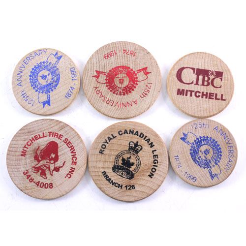 You will receive 6 different tokens representing businesses in the area as follows, Canadian Legion, Mitchell Tire service, Farmix, CIBC, Eickmeyer Transport and Don't Drink and Drive