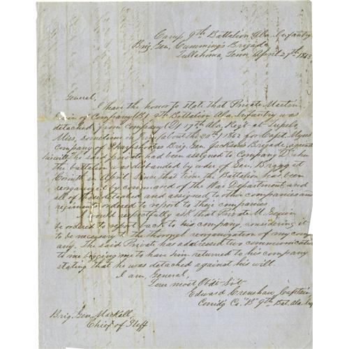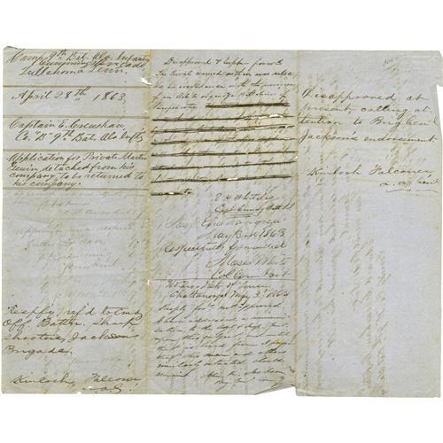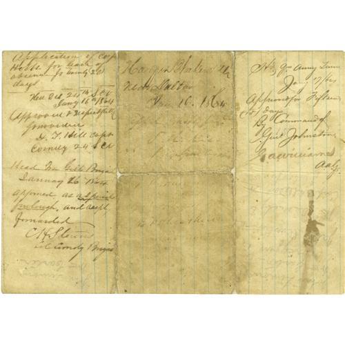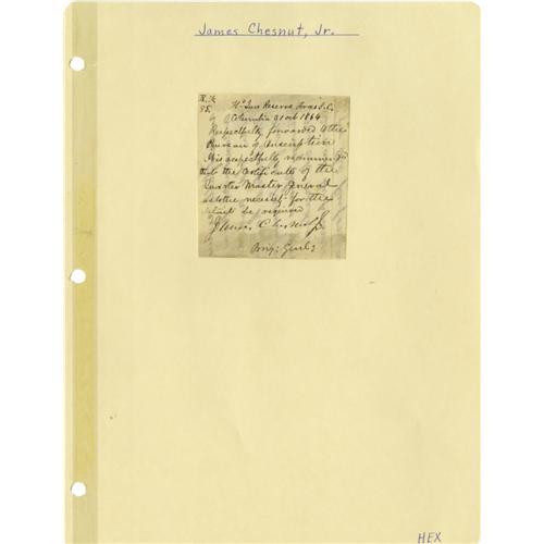 <B>Group Lot of Eight Confederate Generals' Autographs</B></I> consisting of:<BR><B>John King Jackson and Alfred Cumming</B></I>- Both signed endorsements, April 20 and May 3, 1863, to a soldier's request for detachment. Both signatures a little weak but readable. Jackson is scarce.<BR><B>James Chestnut, Jr.</B></I>- Nice, lengthy clipped signed endorsement from C.S.A. military document, dated October 31,1864.<BR><B>Paul J. Semmes</B></I>- Clipped war-dated signature, April 26, 1863. Very scarce signature.<BR><B>Claudius W. Sears</B></I>- Clipped war-dated signature with his then-rank of colonel below.<BR><B>Clement H. Stevens, Benjamin F. Cheatham and "States Rights" Gist</B></I>- All sign endorsements on a military document, January 16-17, 1864. Overall aging. Gist signature is very light. Gist is quite rare, while Stevens and Cheatham are also scarce.<BR><BR><b>Shipping:</b> Small Flat (<a target="_blank" href="http://www.heritageauctions.com/common/shipping.php">view shipping information</a>)