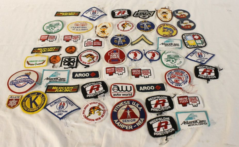 Some soccer, some advertising, some Girl Scout, some Mercury Racing, sports teams, Army chevron, and others. Approx. 50 patches, all for one money
