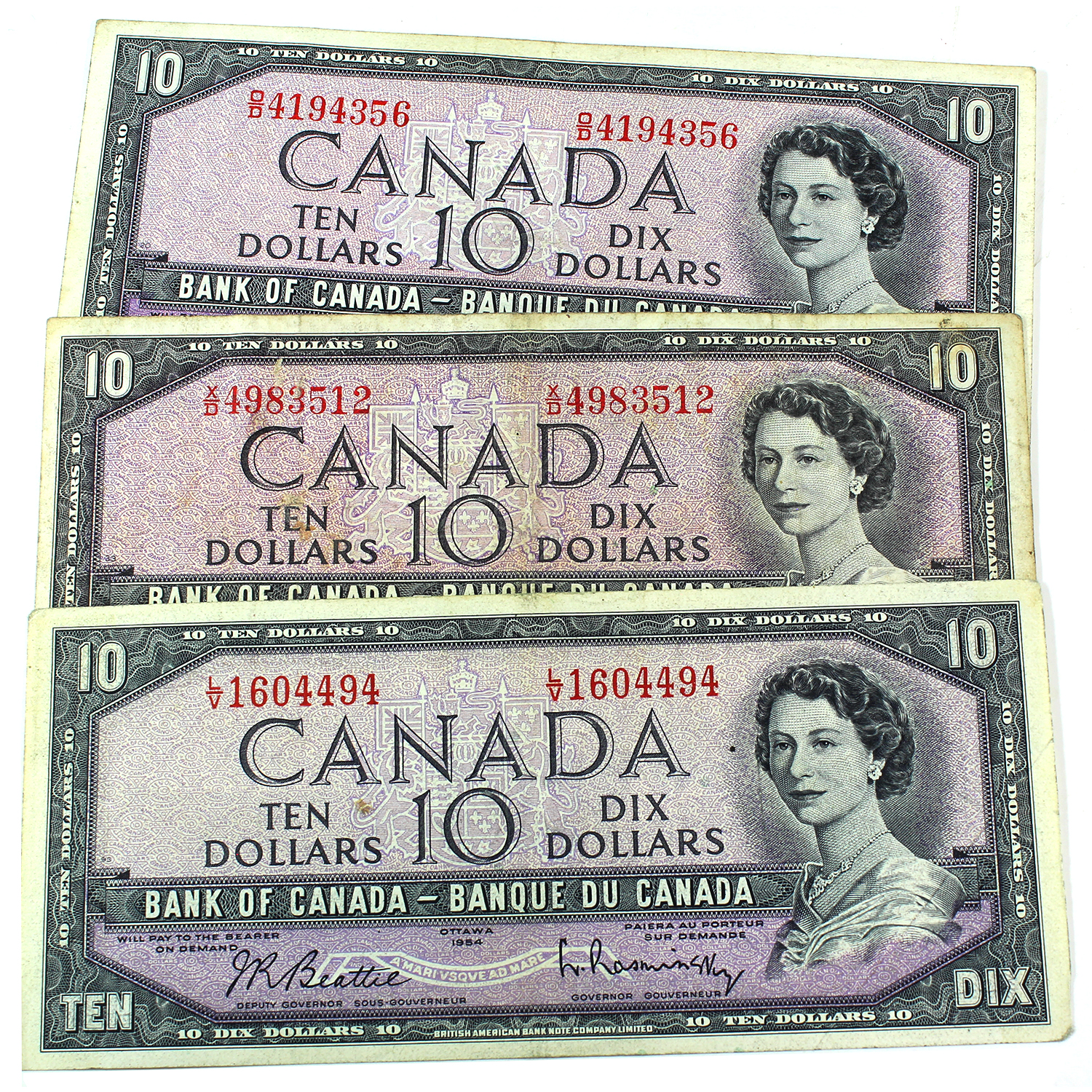 INCLUDES: BC-40a VF Beattie-Coyne SN:O/D4194356 (stain), BC-40a VF Beattie-Coyne SN:X/D4983512 (stains), & BC-40b EF Beattie-Rasminsky SN:L/V1604494. 3pcs.