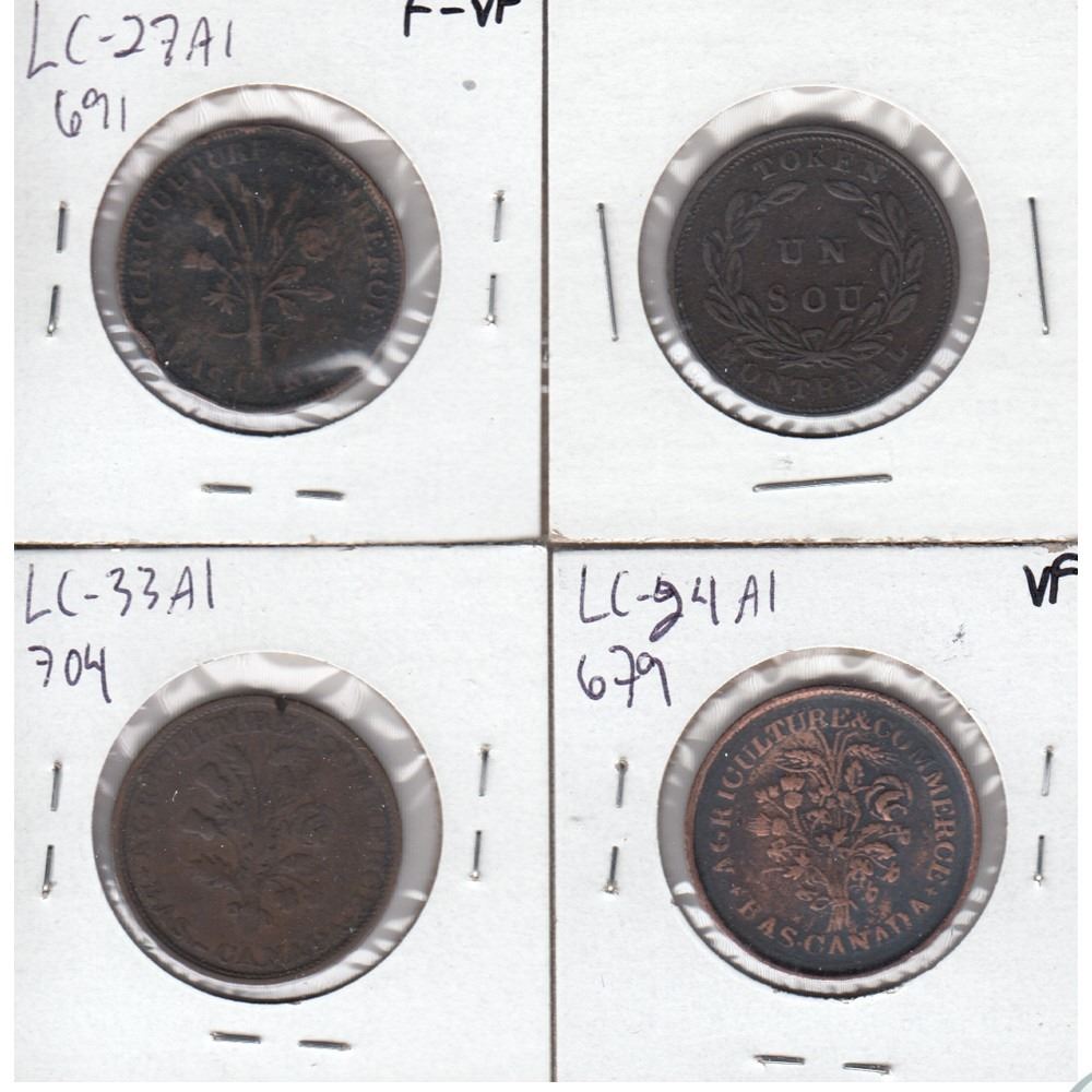Group Lot of Bank Tokens BR# 679, 791, 702 & 704 F-VF to VF. 4pcs