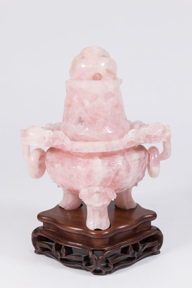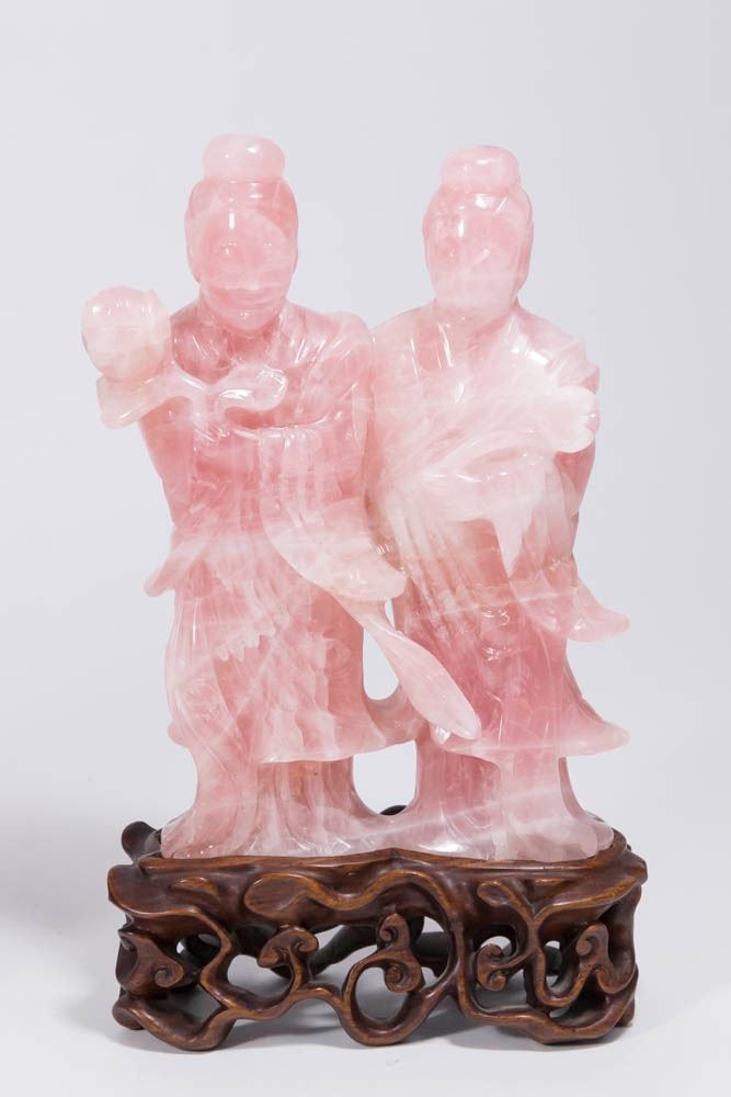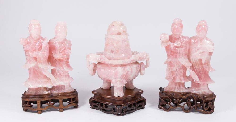 Including Covered censer with foo dog handles and pair of double figurines.- approx. 10" high, all with wood bases.