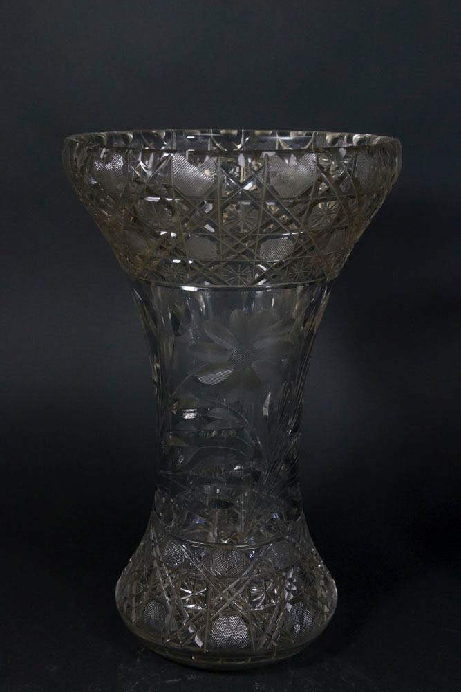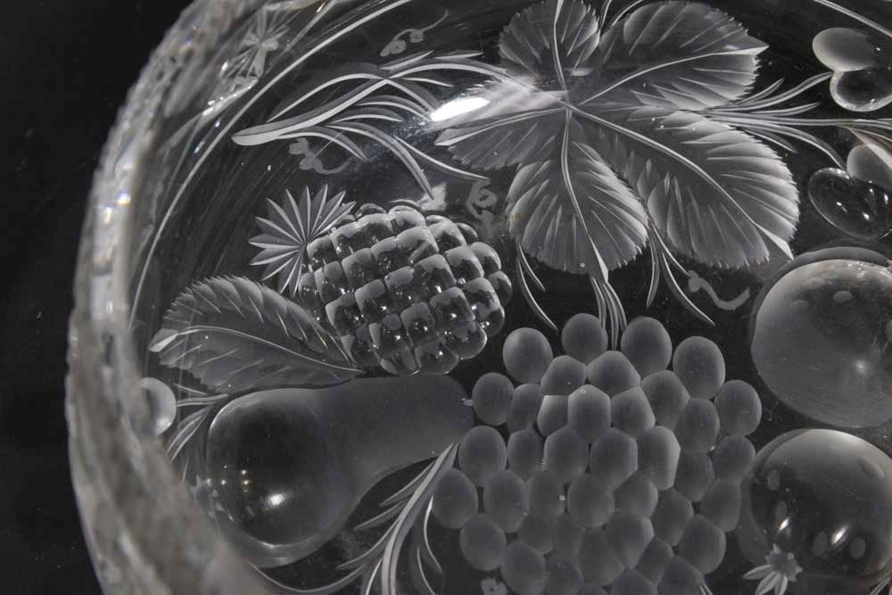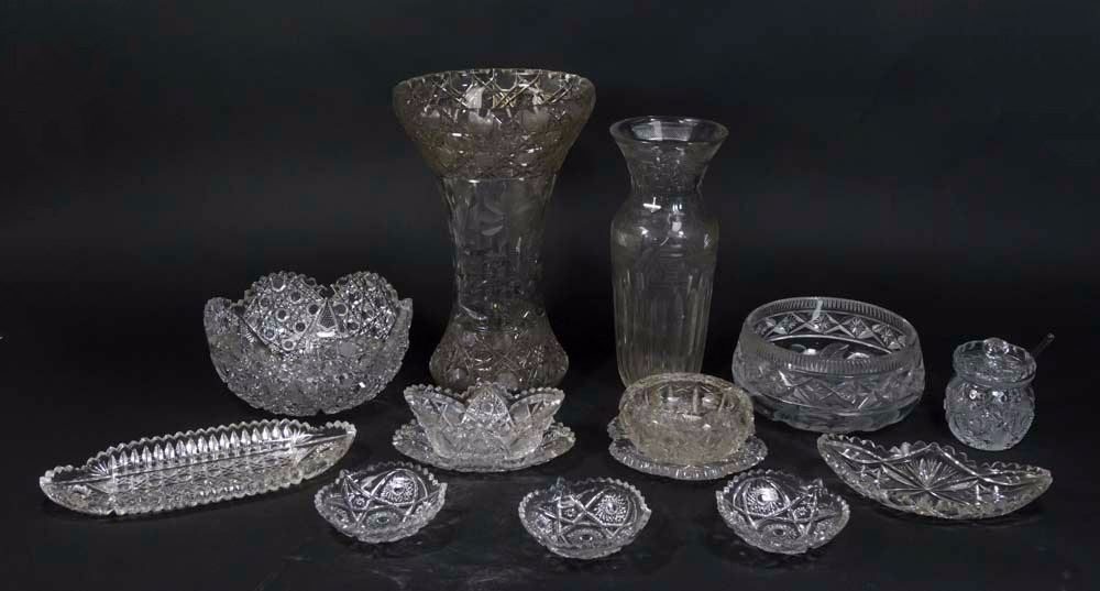 Including 2 bowls, celery tray, assorted nut dishes, ashtray, and 2 vases. 14 pieces total. Tallest vase approx. 13 1/2" H. (6160) Some flaking.