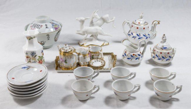 Including teaset on tray; Chinese tea set; vase; rice bowl with cover; Hutschenreuther galloping fawns. (4155)