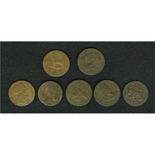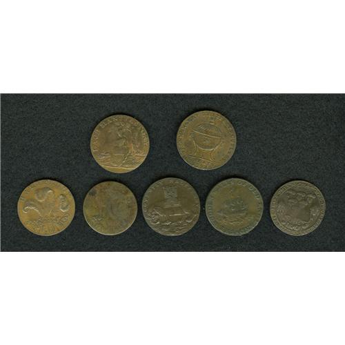 <B>Group Lot of Seven Conder Tokens, Uncertified.</B></I> Grades range from Fine to Choice AU.