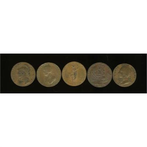 Group Lot of Five Halfpenny Conder Tokens, AU50