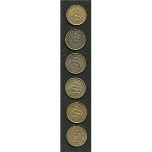 <B>Six Assorted Hard Times Tokens.</B></I> Copper. Includes: <B>HT-16; HT-18; HT-21 (two pieces); HT-22 Uncirculated; </B></I>and <B>HT-152 XF</B></I>. An appealing lot of early Hard Times tokens that should be seriously considered.<BR><BR><b>Shipping:</b> Coins & Currency (<a target="_blank" href="http://www.heritageauctions.com/common/shipping.php">view shipping information</a>)