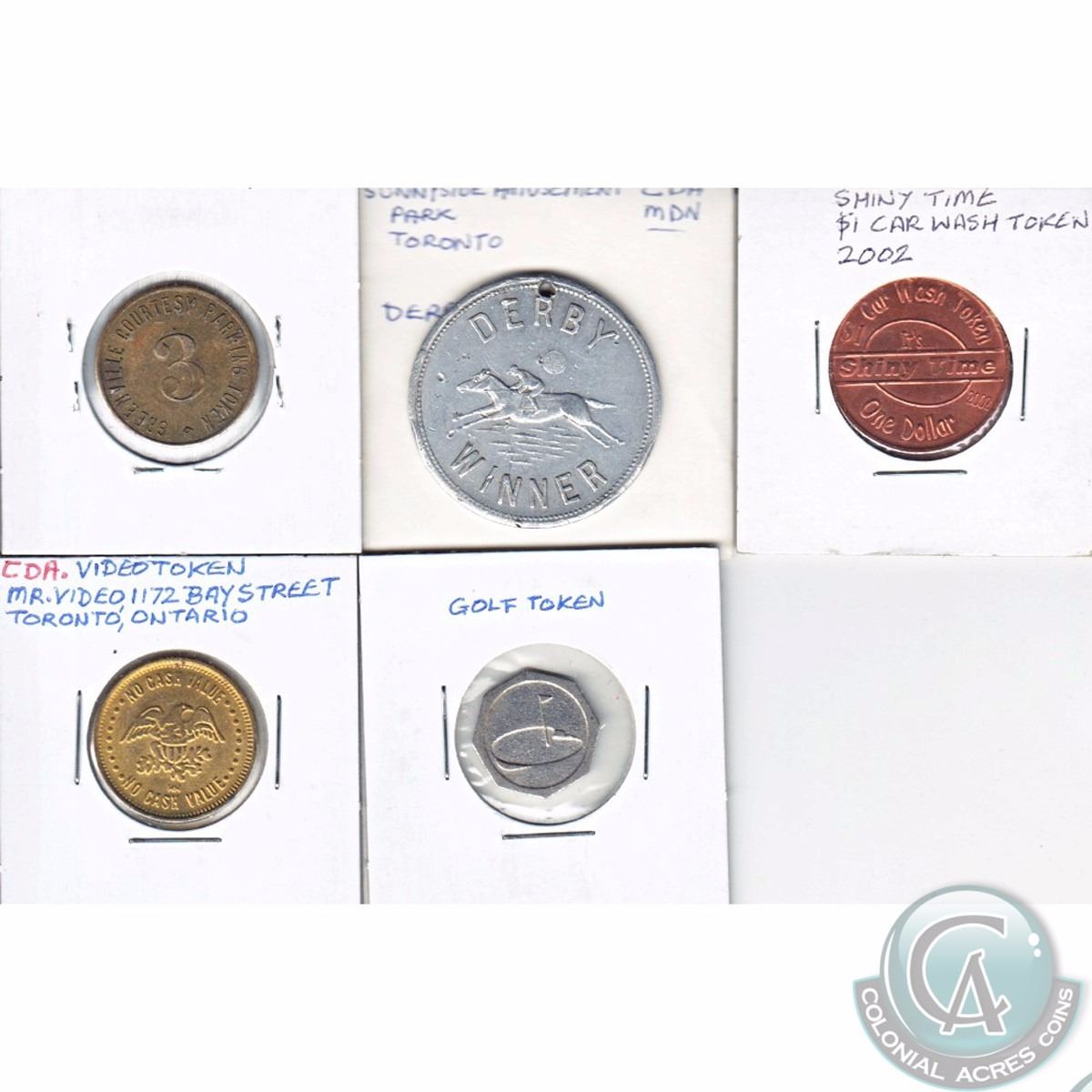 Group Lot of Miscellaneous Tokens (Amusement and Transit). 5pcs
