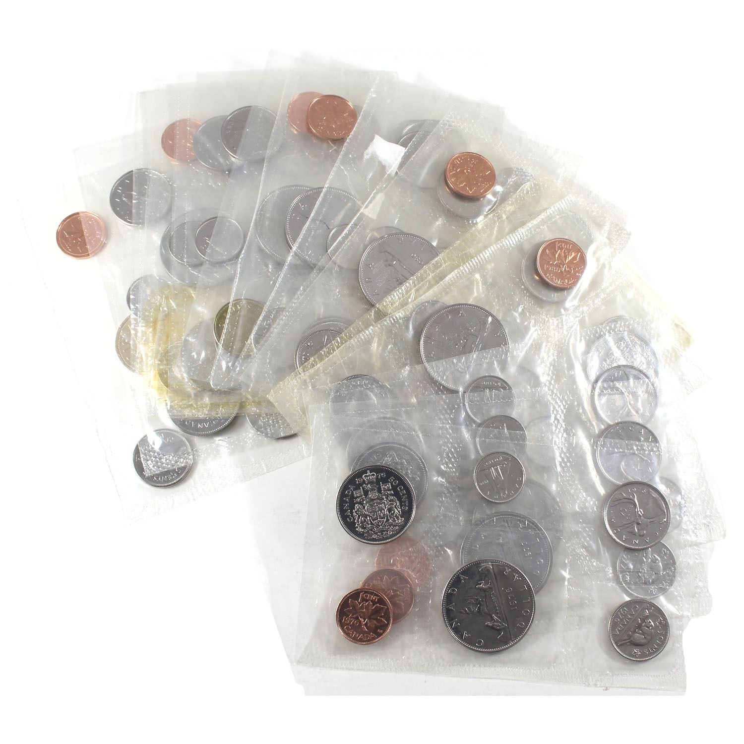 Group Lot of Mixed Date Canada Proof Like Sets in RCM Sealed Pliofilm - 1976, 2x 1977, 4x 1980, 2x 1981, 3x 1982, 1983, 1985 & 1988. 15pcs.