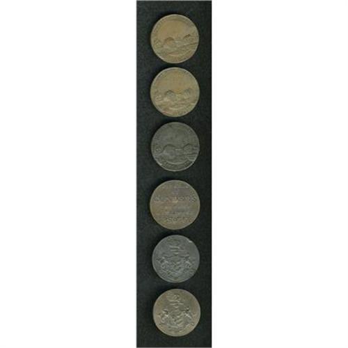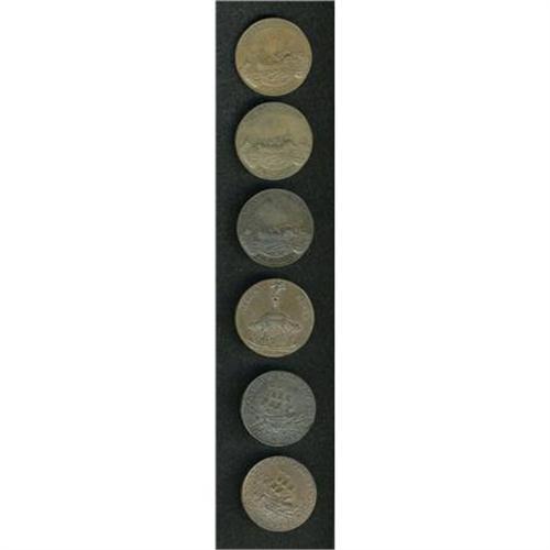 <B>Six British Suffolk Conder Tokens, Uncertified. </B></I> Includes: DH-34, Suffolk/Ipswich, circa 1794, (two pieces); DH-35, Suffolk/Ipswich, 1794; DH-37e, 1793 (three pieces). Grades range from XF to Uncirculated.<BR><BR><b>Shipping:</b> Coins & Currency (<a target="_blank" href="http://www.heritageauctions.com/common/shipping.php">view shipping information</a>)