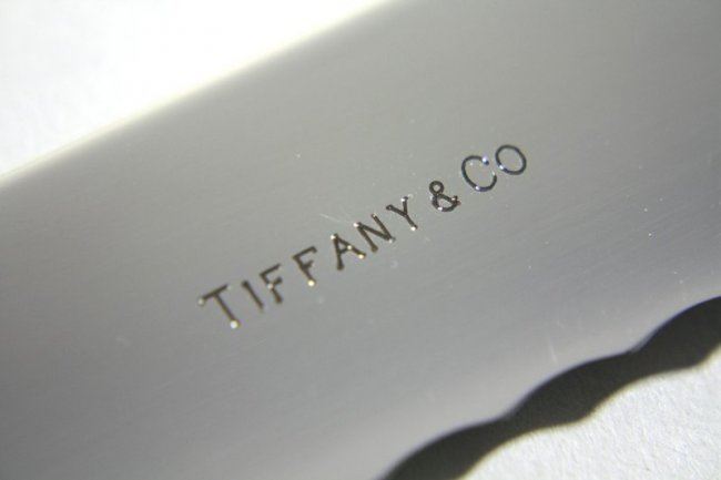 Including Tiffany heart shaped dish,approx. 1" H x 4 3/4" W, 139 grams, 4.4ozt, (2) sterling Peretti for Tiffany serving knives, 2 piece Gucci carving set, Tiffany & Co. pie server & Stieff pie server. 3 Tiffany bags, 7 pieces total.