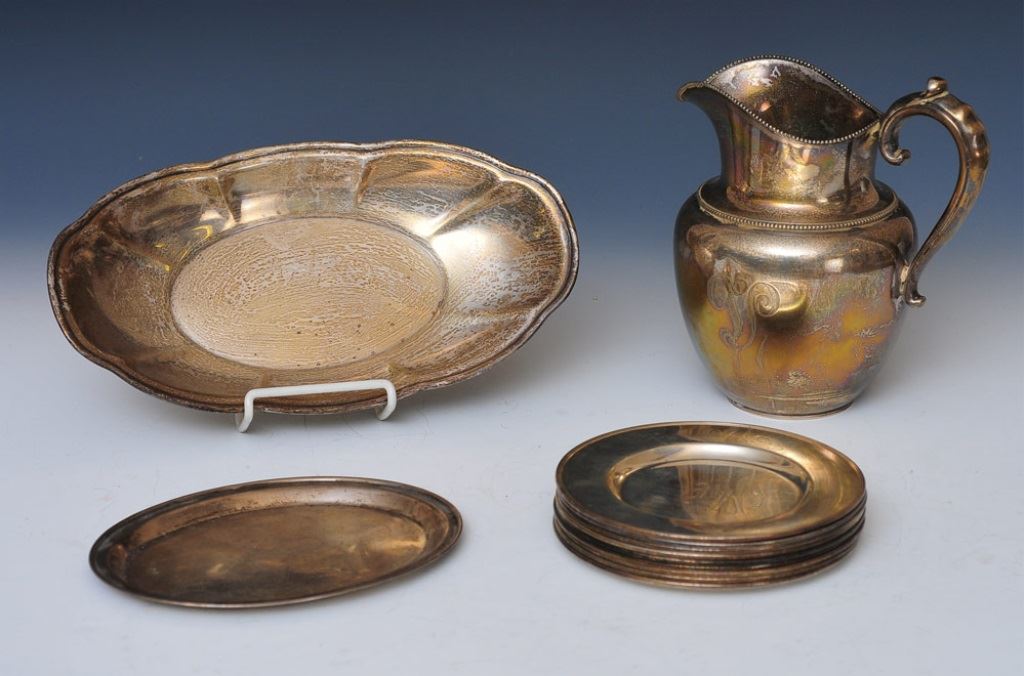 CONDITION REPORT: monograms to bread plates and pitcher, a few scattered dings throughout
