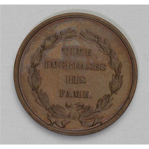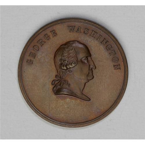<B>Group Lot of Three Medals and Tokens.</B></I> The lot includes: <B>1876 See How We Prosper Medal in Bronze, XF.</B></I> 44.8mm, plain edge, R.4. Listed as Baker 428 in Rulau's <I>Medallic Portraits of Washington 2nd Edition.</B></I> Obverse: undraped bust left, 1776 at left, 1876 at right, and R. Laubenheimer under bust. Around: George Washington, The Father Of His Country. / A Century Adds Lustre To His Fame. Reverse: Two females on a section of the globe, marked as America. Europe at the left has a shield ornamented with temples; America and the right has a U.S shield and staff with a liberty cap balancing on the end; an exhibition building with a radiant eagle above; <B>1889 Washington Centennial Medal in Dark Bronze, XF.</B></I> 34mm, plain edge, unholed, listed as 42 in Rulau's <I>Medallic Portraits of Washington 2nd Edition.</B></I> Obverse: undraped bust right, M. on truncation, George Washington around, 1789 below. Reverse: Shield of Arms of New York within a circular wreath at the center. In concentric lines around: Centennial Anniversary Of The Inauguration / First President of the United States / .New York. / .April 30. 1798; and a <B>Time Increases His Fame Token in Copper, AU.</B></I> 27mm, plain edge, R.2. Listed as Baker 91B in <I>Medallic Portraits of Washington.</B></I> Obverse: Head right, George Washington above. Reverse: Within olive wreath: Time Increases His Fame. <BR><BR><