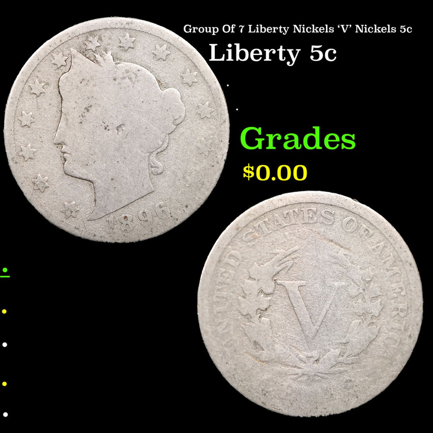 Group Of 7 Liberty Nickels 'V' Nickels 5c.