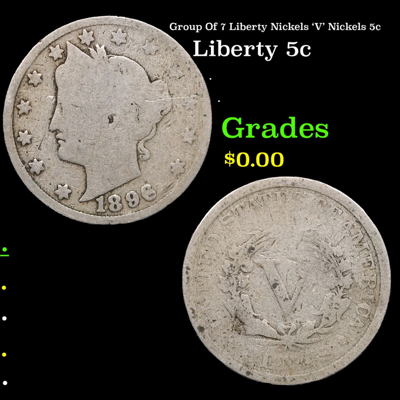 Group Of 7 Liberty Nickels 'V' Nickels 5c.