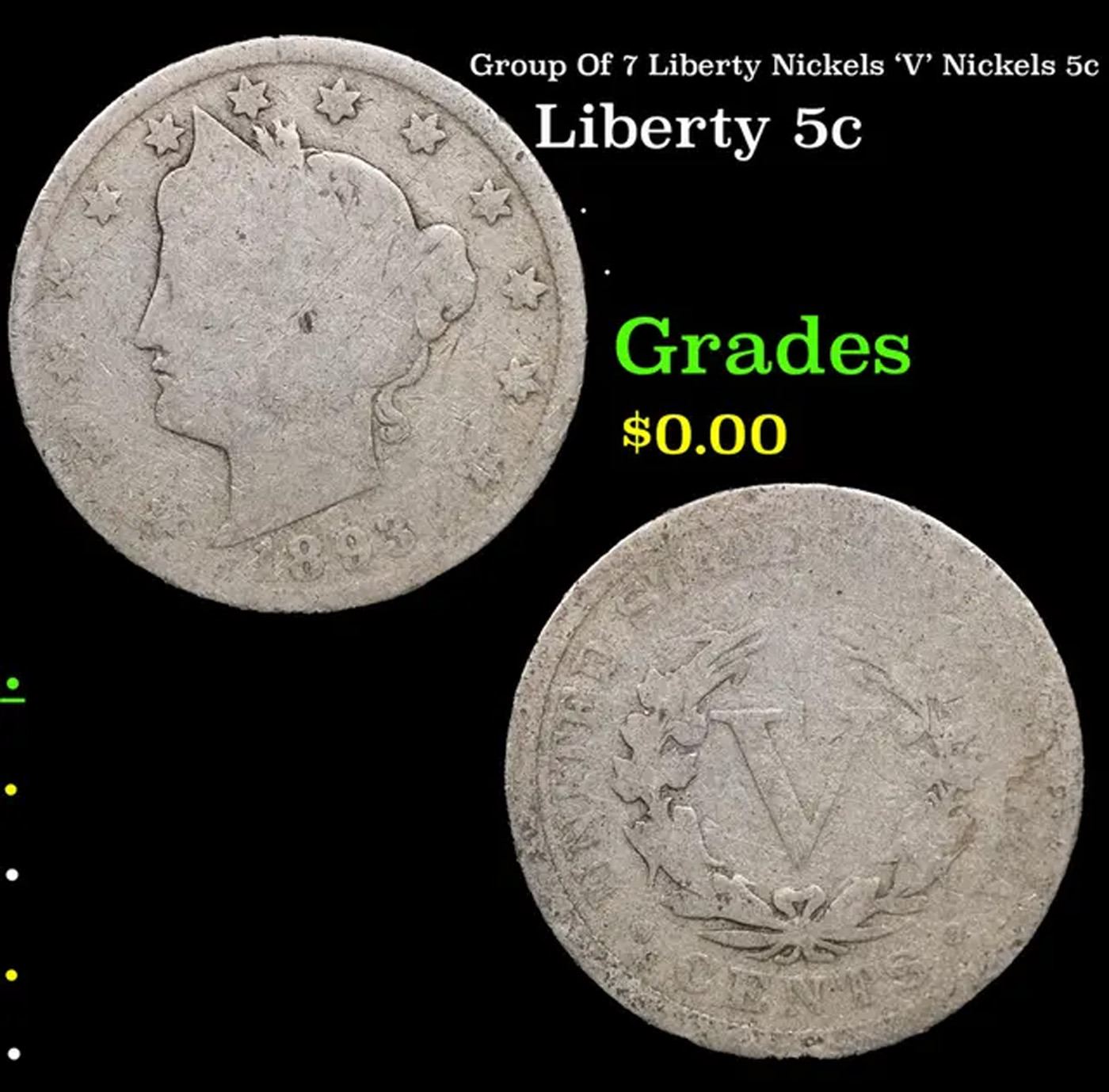 Group Of 7 Liberty Nickels 'V' Nickels 5c.